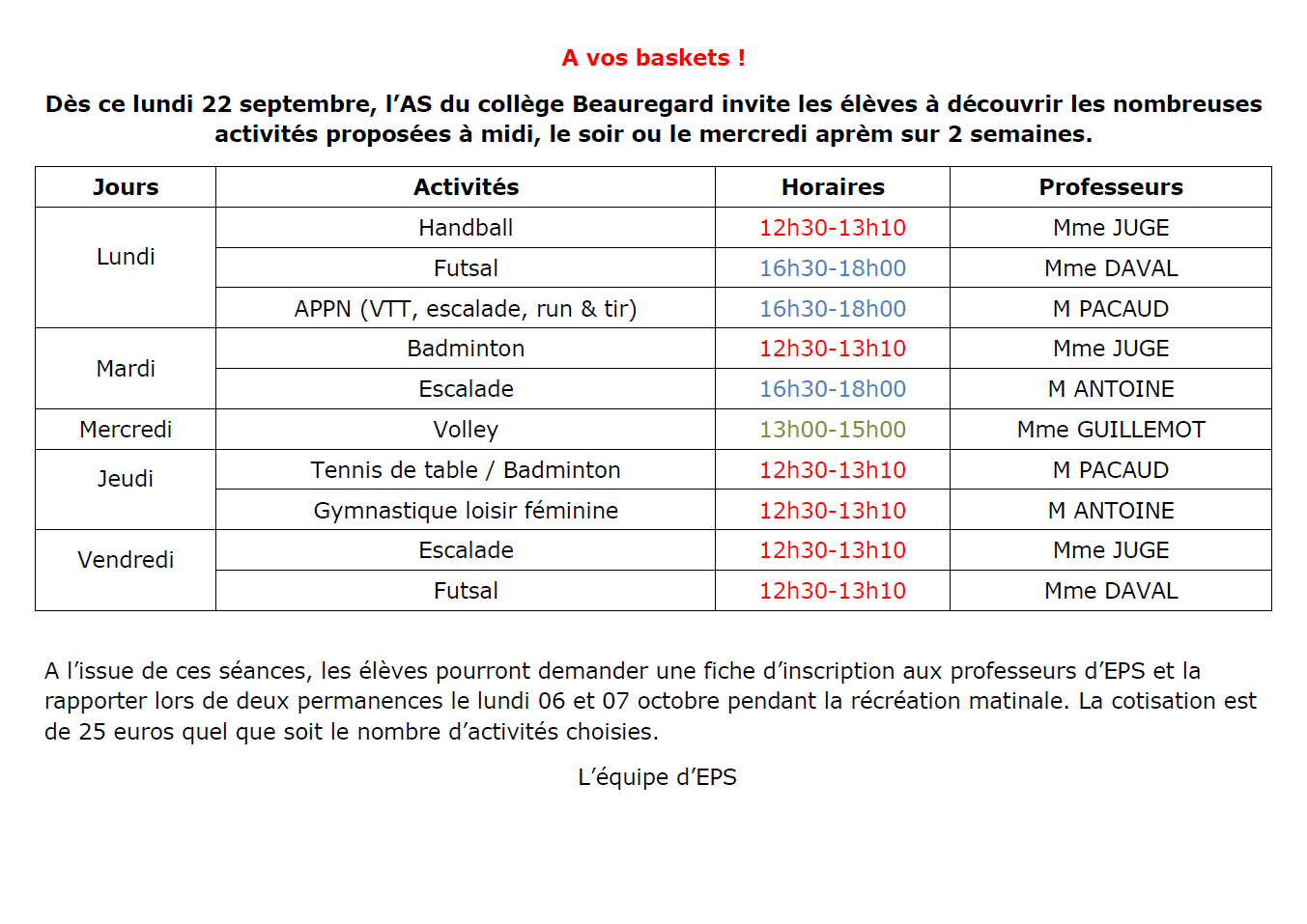 Association Sportive Beauregard : A vos baskets !