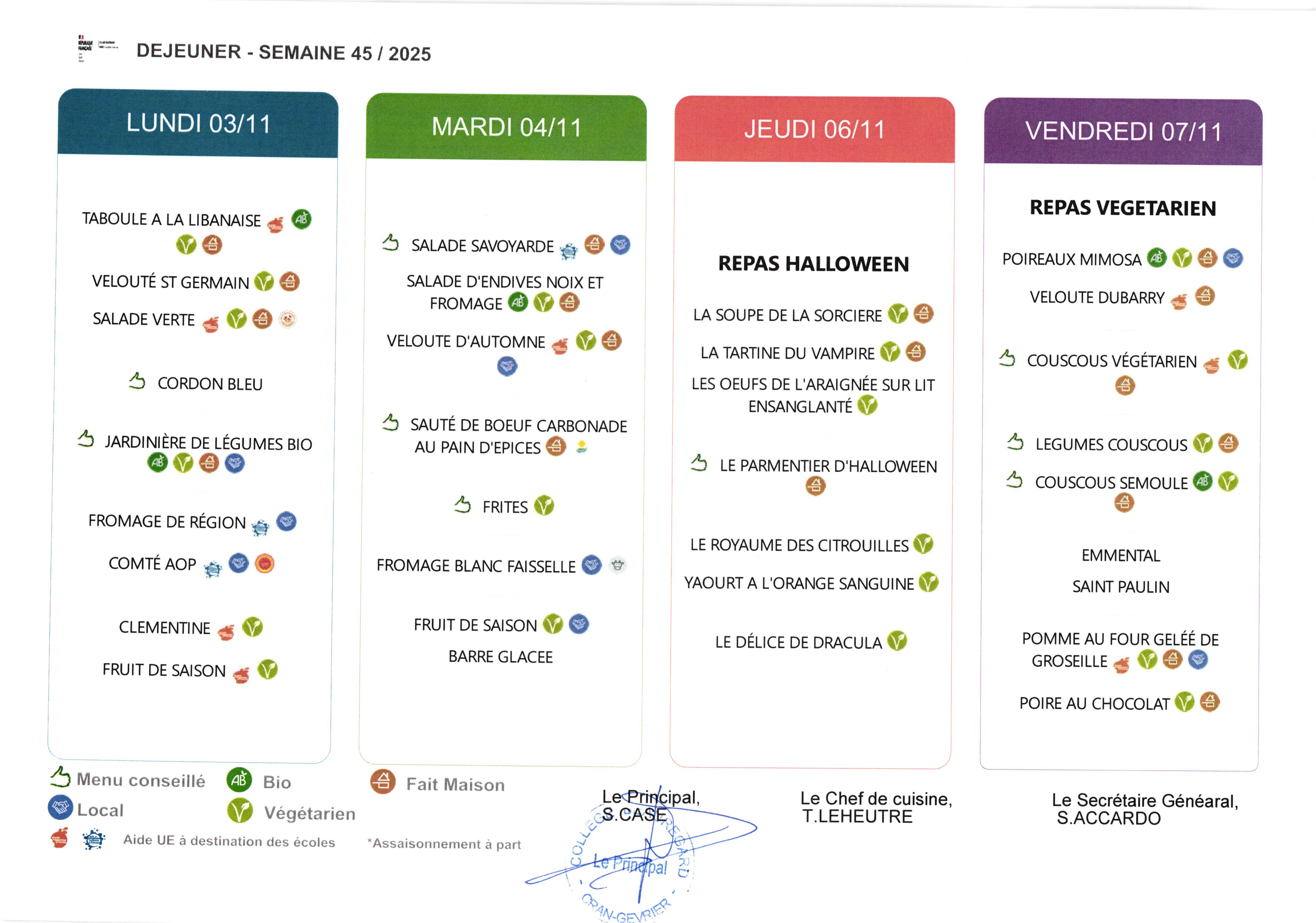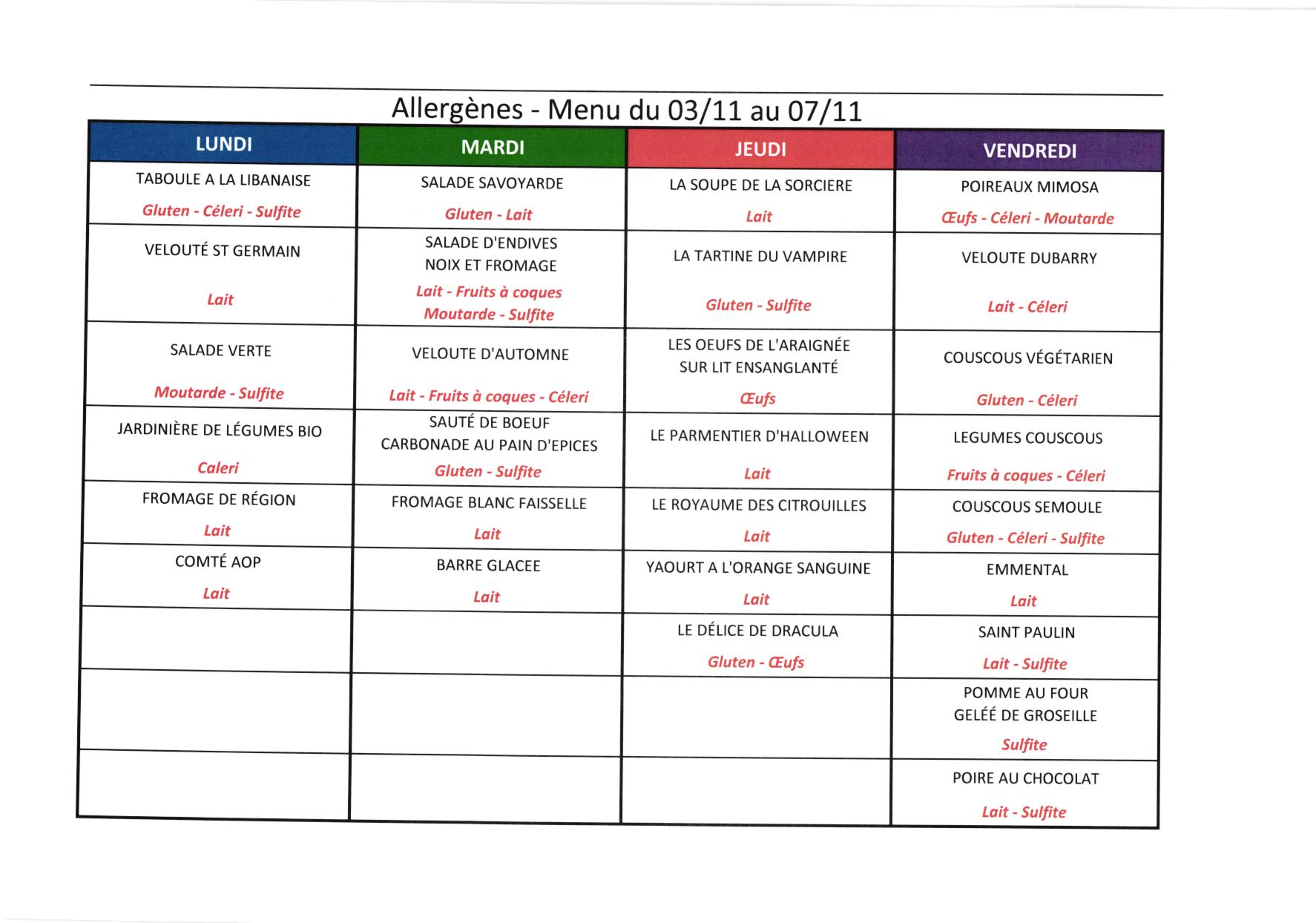 Menu et allergènes Semaine du 03 au 07 novembre 2025 - Menu Halloween !