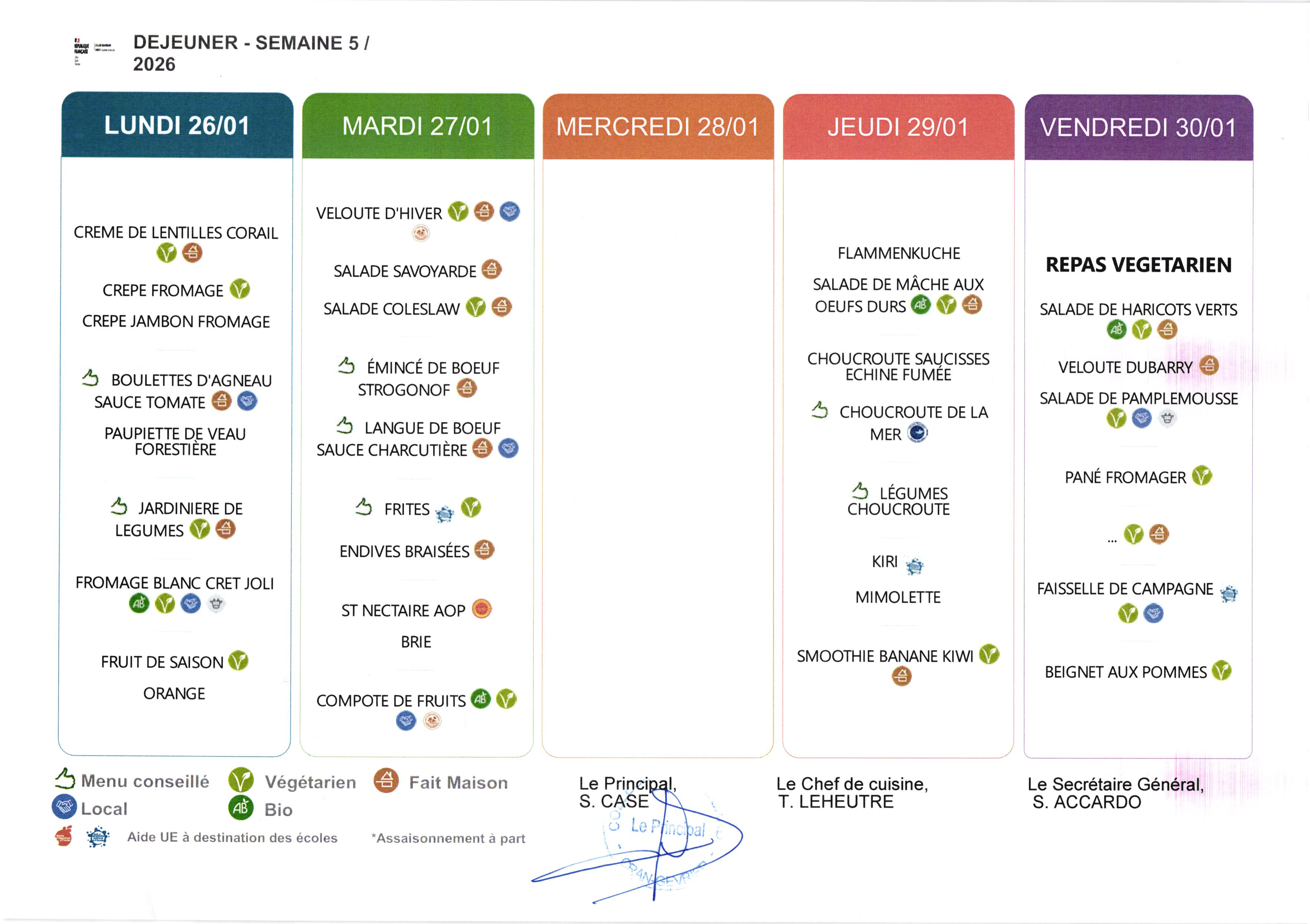 Menu et allergènes Semaine du 26 janvier au 31 janvier 2026